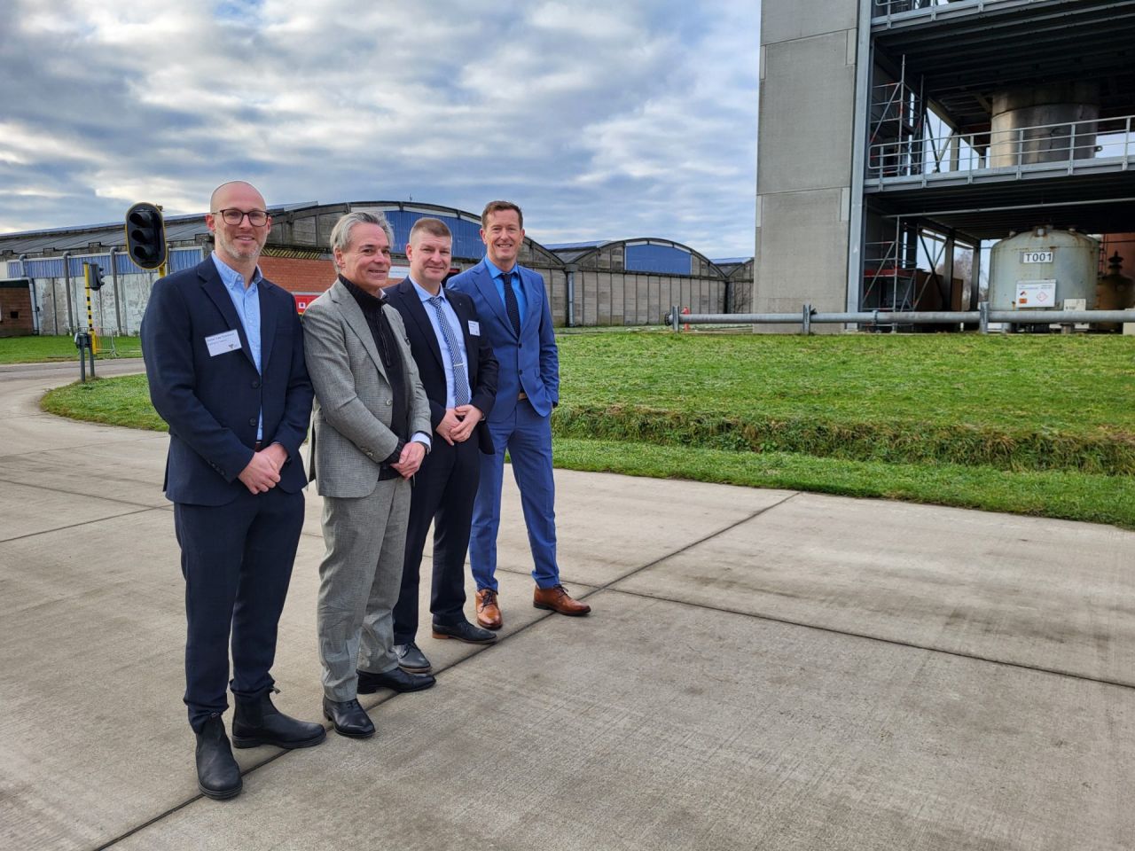 Van links naar rechts: algemeen directeur Pieter Van Turnhout, projectmanager Erik De Bruyn, professor Ingmar Nopens en CEO C-biotech Frederik Verstraete.