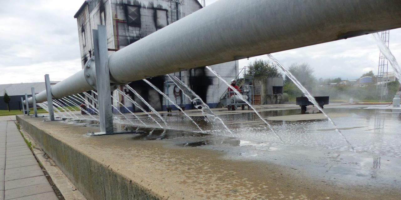 We ontwikkelen een uniek gesloten circuit waarbij het gebruikte bluswater van de twee oefenplaten wordt gerecycleerd. De bezinkbekkens sturen het water naar de waterzuiveringsinstallatie die het water zuivert tot oppervlaktewaterkwaliteit. Ook al ons huishoudelijk afvalwater wordt daar op aangesloten. Het water komt vervolgens terecht in een groot ondergronds bufferbekken van maar liefst 460.000 liter. Van hieruit vertrekt een hydrantennetwerk waarop alle blusslangen aangesloten worden. Deze nieuwe oefenplaat is vanaf begin 2018 operationeel.